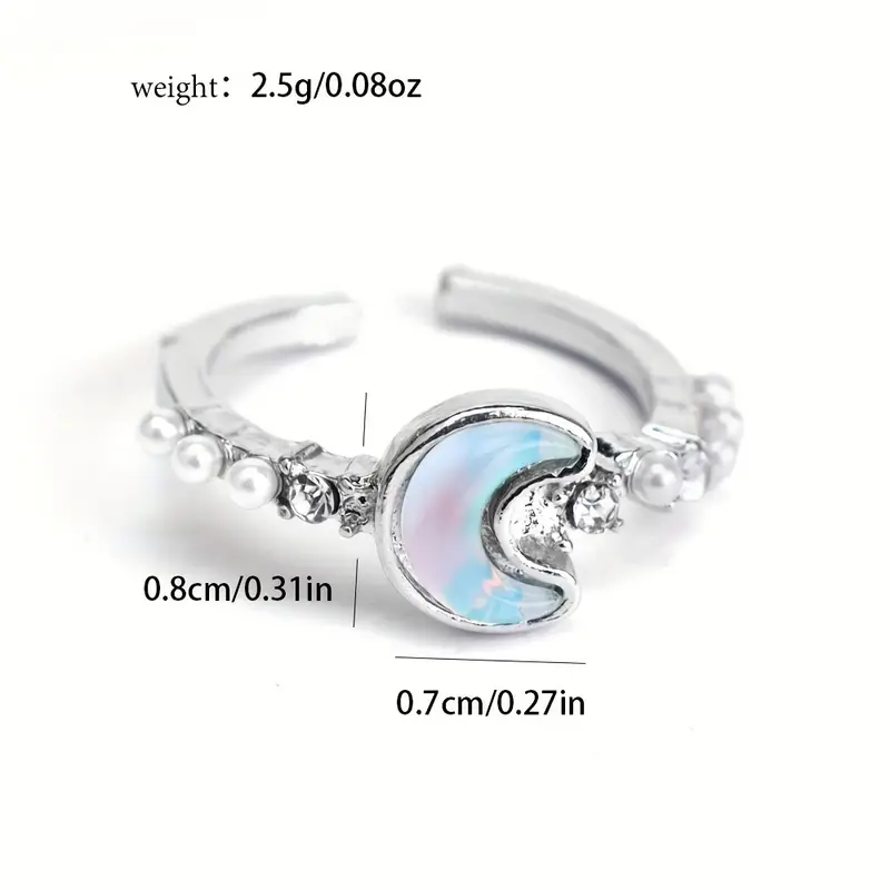 Elevate your jewelry collection with our Moonlight Pearl Crescent Ring, featuring a dreamy iridescent moon centerpiece paired with delicate pearls and sparkling stones. This adjustable silver-tone ring brings soft celestial charm to any outfit, making it perfect for daily wear, gifting, or special occasions. Its elegant design captures the glow of the night sky, adding a touch of magic and femininity to your look. πŸŒ™