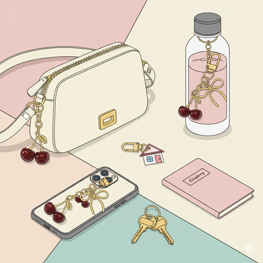 Add a playful touch with this Cherry Bow Charm. Featuring a glossy cherry pendant with a chic golden bow, itβs perfect for handbags, backpacks, or as a keychain. Crafted with durable and lightweight materials, this Cherry Bow Charm makes your accessories look elegant and trendy. Available at BabyGirl π