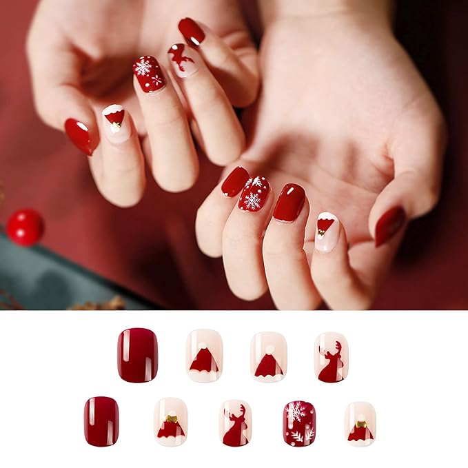 Celebrate the season with this Christmas Red Heart & Snowflake Nail Art Set, featuring a festive mix of glossy red nails, cute heart accents, and elegant snowflake designs. This manicure blends warmth and winter charm, making it perfect for Christmas parties, gifting, holiday photoshoots, and cozy December looks. The perfect choice for those who love romantic, cute, and classic Christmas nail vibes. πβ€οΈβ¨