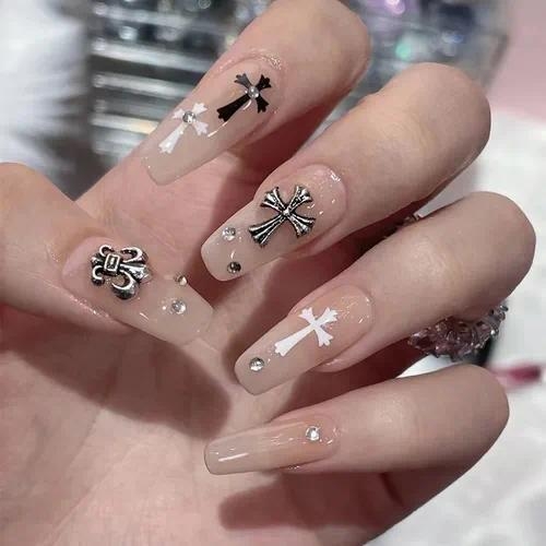 Elevate your festive style with Christmas Elegant Nude & Cross Designer Nails, featuring soft nude tones, metallic cross charms, and delicate crystal accents. This classy Christmas nail set blends minimal elegance with holiday glamour, making it perfect for winter parties, gifting, and everyday festive wear. Designed to give your nails a luxurious, clean, and Pinterest-worthy Christmas look. πβ¨π