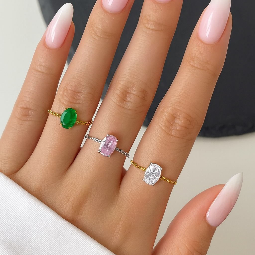 The Glow Mom-Daughter Chain Ring is a delicate and meaningful piece that celebrates the unbreakable bond between mother and daughter. Featuring a sparkling blue oval gemstone set on a sleek silver-tone chain band, this ring combines elegance with comfort. Designed as a matching pair, itβs the perfect way to honor love, connection, and style. Make memories shine with the Glow Mom-Daughter Chain Ring, exclusively available at BabyGirl. π