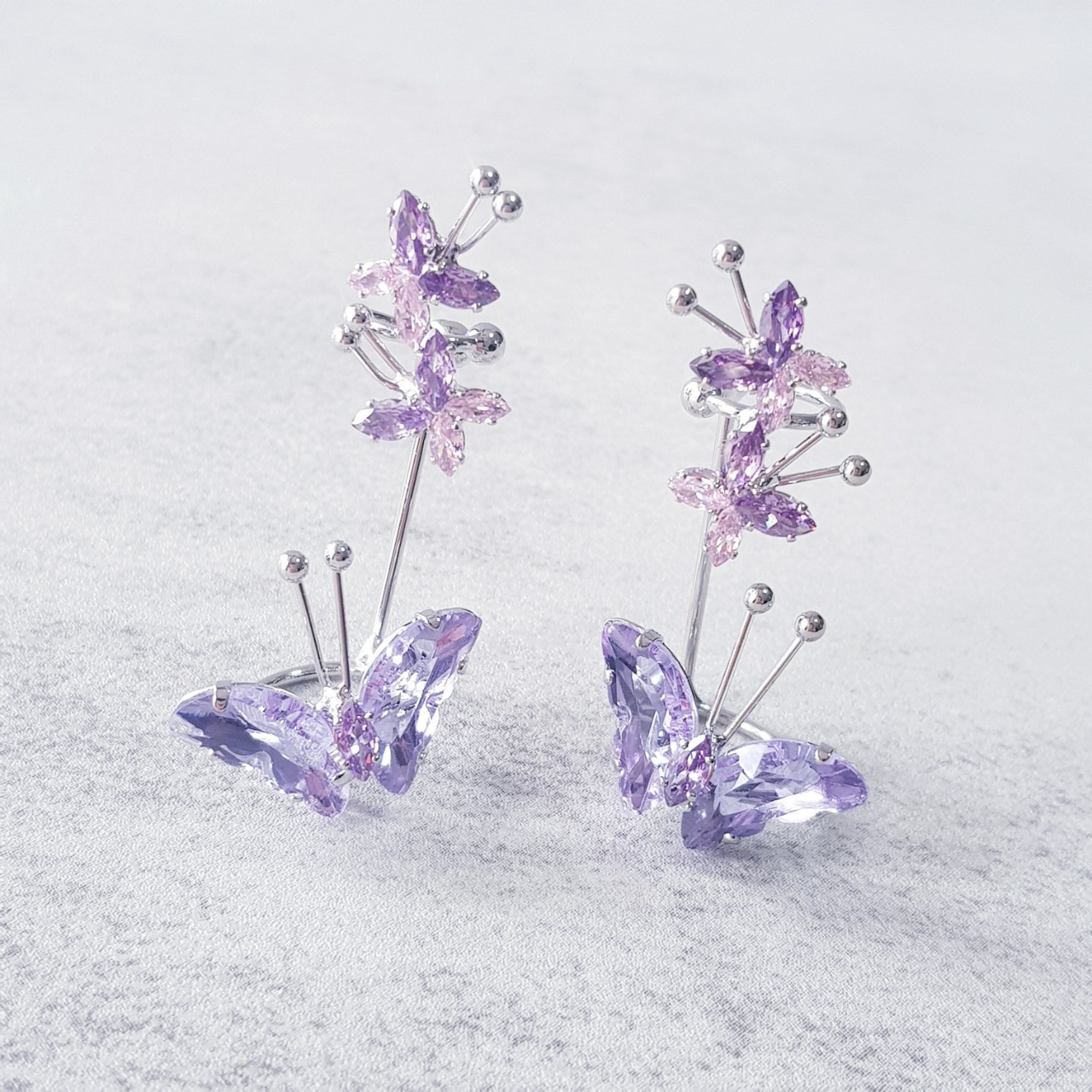 π Lavender Crystal Butterfly Earrings | Luxury Amethyst Floral Statement Jewelry