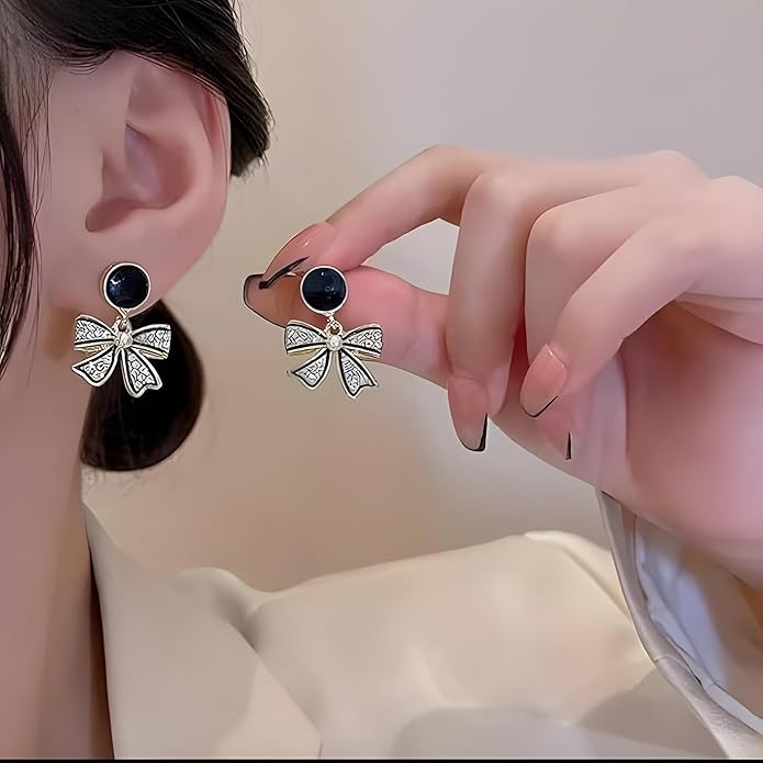 Make a bold yet elegant statement with our Black Elegance Bow Earrings, crafted with glossy noir accents, sparkling crystals, and a gold-tone ribbon frame. Finished with a delicate pearl center, these earrings blend vintage charm with modern luxury β perfect for parties, date nights, festive outfits, or polished everyday looks. Classy, glamorous, and beautifully eye-catching. β¨π€π