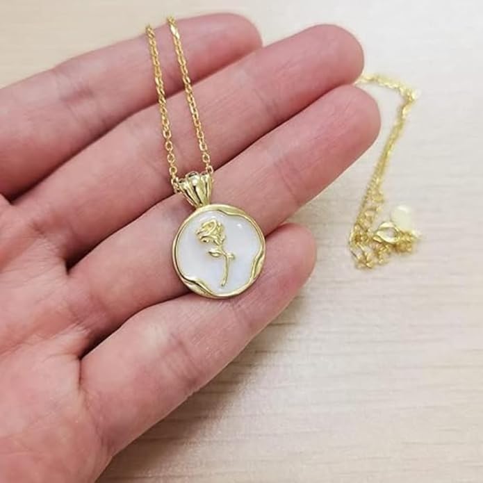 ๐ŸคWhite Glaze Rose Neck Chain | Golden Rose Pendant Necklace for Women