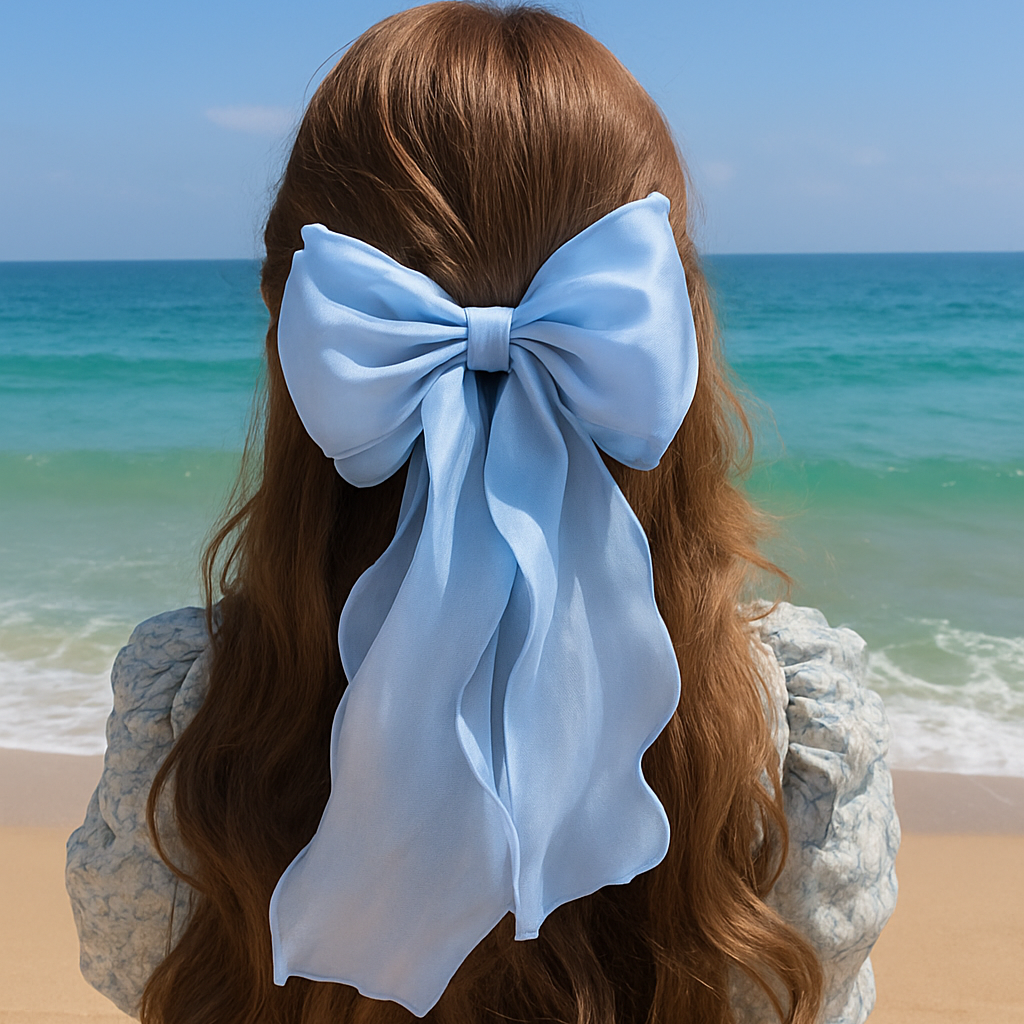 Aqua Breeze Ribbon Bow β Elegant Long Sheer Hair Clip π