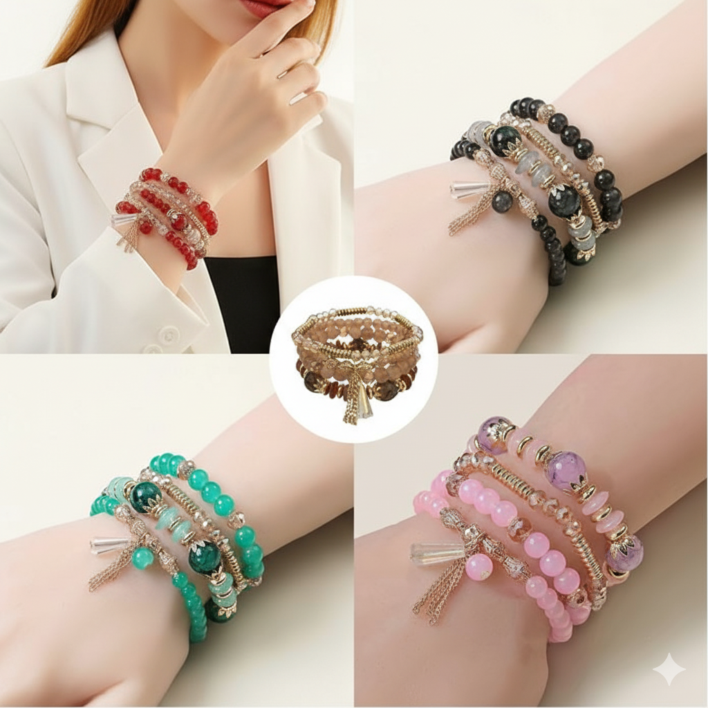 Aurora Dreamy Luxe Bracelet Set ✨🌌 | Elegant Beaded Stackable Bracelets for Women