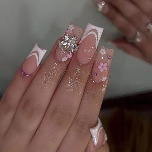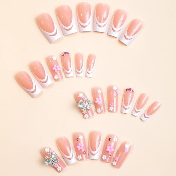 Blush Blossom Press-On Nails β Elegant Floral Pink & White Manicure πΈβ¨π