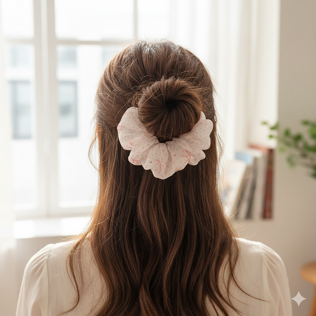 Add a touch of elegance to your hairstyles with the Blush Bow Scrunchie, designed with delicate pink bows and soft polka dot fabric. This scrunchie is perfect for styling both casual and dressy looks while keeping your hair secure and damage-free.