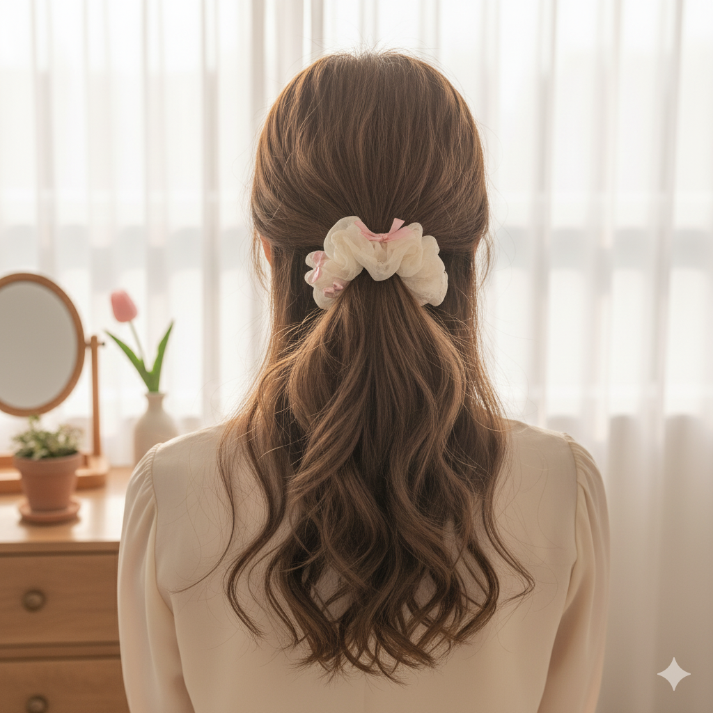 Blush Ribbon Scrunchie β Sheer White Bow Hair Tie
