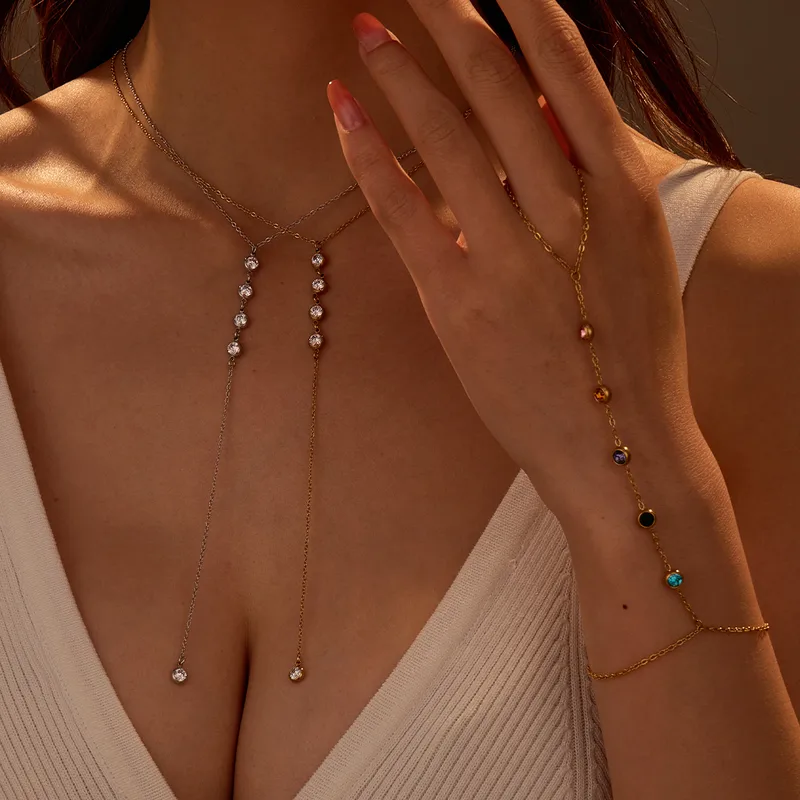 The Colorful Crystal Hand Chain Bracelet β Elegant Finger Link Jewelry is a chic accessory designed to bring sparkle and elegance to your style. Featuring multicolor crystal stones on a delicate gold-tone chain, this bracelet extends gracefully to link around the finger, adding a unique and fashionable touch. Wear the Colorful Crystal Hand Chain Bracelet β Elegant Finger Link Jewelry at parties, weddings, or special occasions to stand out with effortless charm. A perfect blend of modern elegance and timeless sparkle.