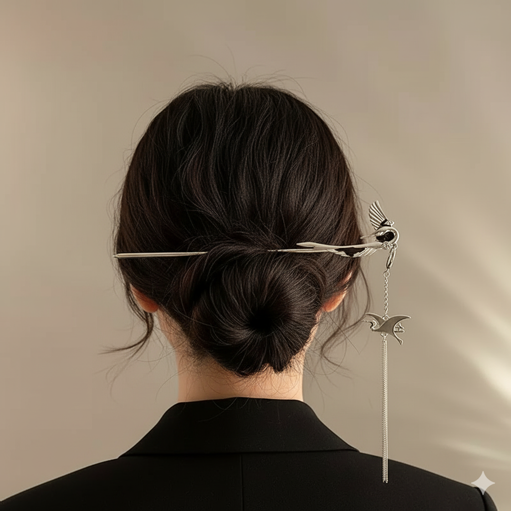 The Flying Crane Kanzashi ποΈβ¨ is a timeless hair accessory inspired by traditional elegance. Featuring a beautifully crafted crane design with a silver finish and delicate dangling charm, it symbolizes grace, peace, and longevity. Perfect for weddings, parties, cultural outfits, or adding a touch of sophistication to any hairstyle. ππΈ
