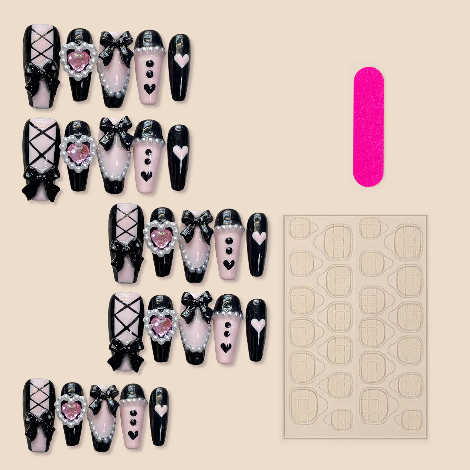 The Glam Noir Bow Press-On Nails π€πβ¨ bring together elegance and charm in one stunning set. Featuring a chic black-and-pink design with bows, hearts, and sparkling crystals, these nails add instant glamour to any outfit. Perfect for parties, special occasions, or when you want a salon-quality look in minutes. Reusable and comfortable, theyβre a must-have for fashion lovers. πβ¨