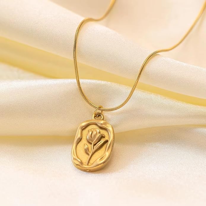 Golden Luxe Rose Pendant πΉ | Anti-Tarnish Rose Engraved Necklace for Women