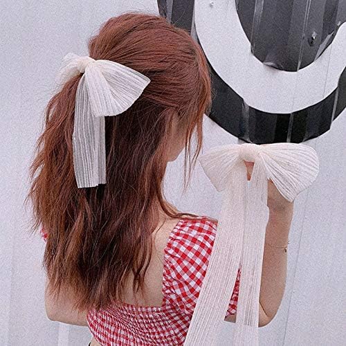 Ivory Luna Moonstream Bow β Elegant Long Ribbon Hair Clip π
