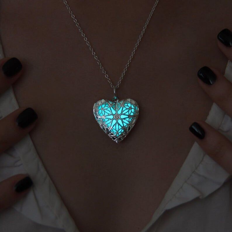 Luminous Crystal Heart Necklace π | Glow-in-the-Dark Aqua Heart Pendant Necklace