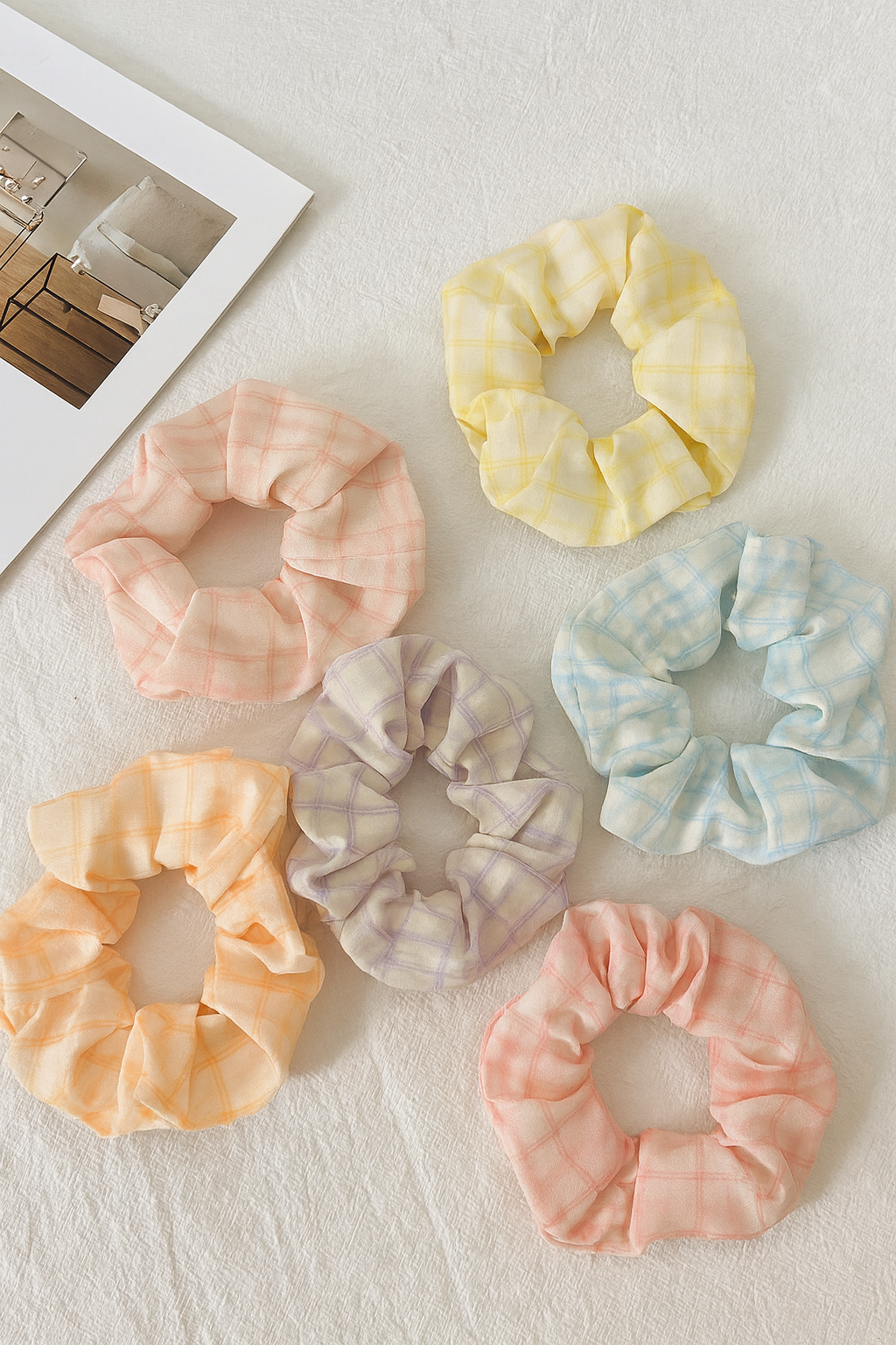 Pastel Plaid Scrunchie Set β Soft Gingham Hair Ties