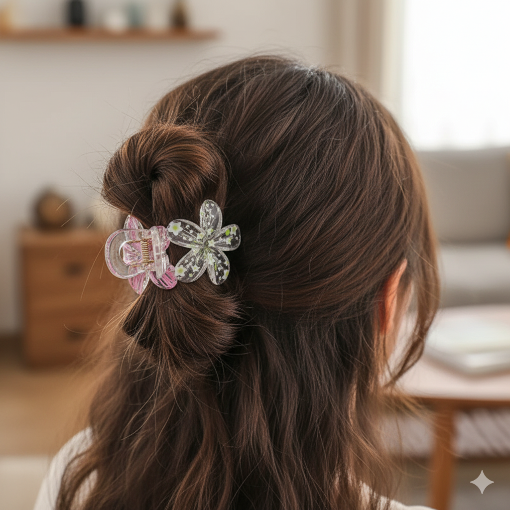 The Petal Bliss Hair Clip πΈβ¨ is a delightful accessory that brings a touch of floral magic to your hairstyle. Featuring soft pastel petals in pink and white, this claw clip combines cuteness with practicality. Its lightweight yet sturdy design ensures a secure hold, making it perfect for daily wear, casual outings, parties, or as a thoughtful gift for someone special. Add a sweet and dreamy charm to your look with this lovely floral hair clip. ππΌβ¨