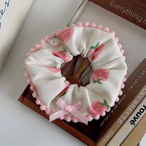 Strawberry Kiss Scrunchie β Sweet Pink Bow Hair Tie