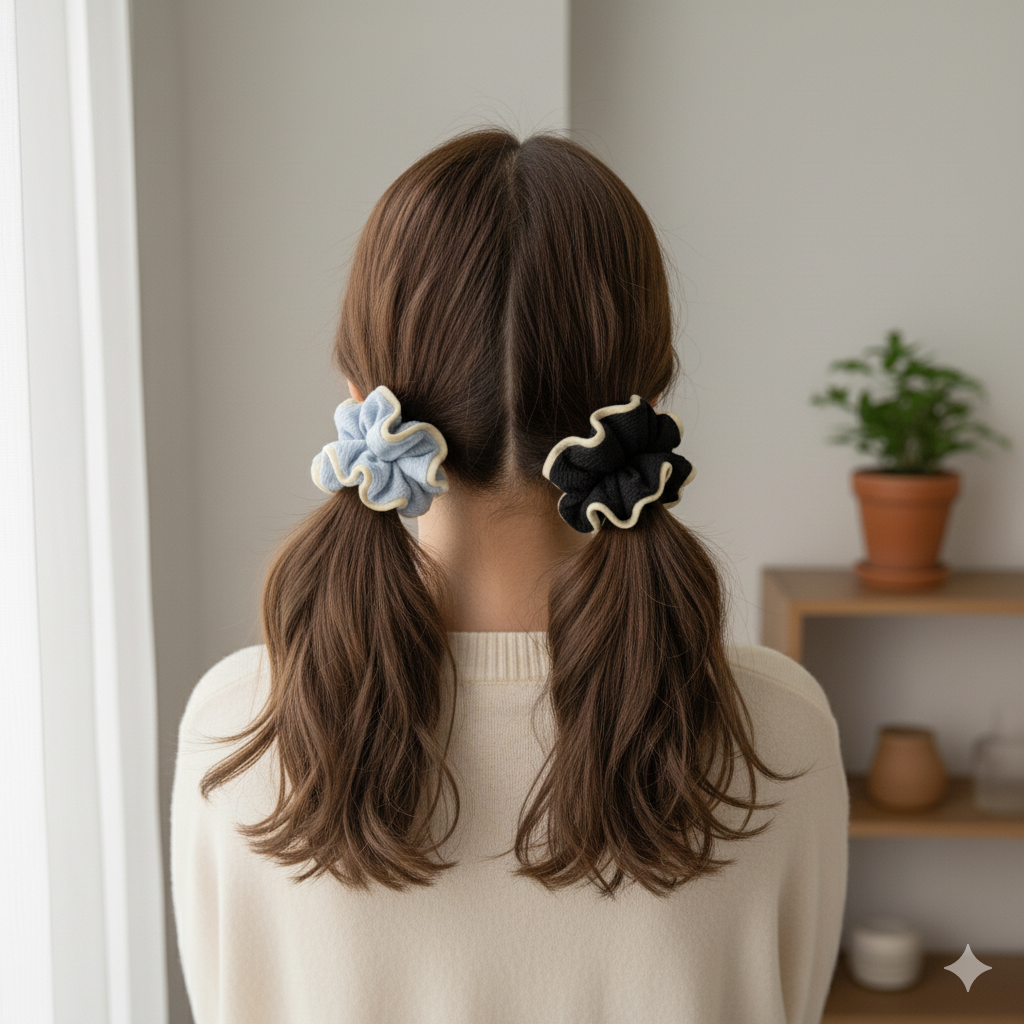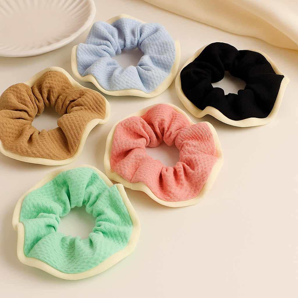 Textured Ruffle Scrunchie – Soft Pastel & Neutral Hair Tie Set