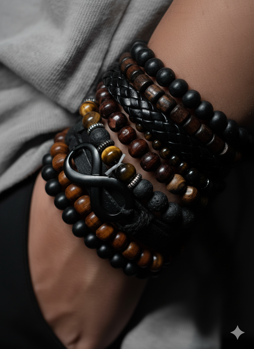 The Tribal Black Aura Bracelet Stack π is a bold and stylish collection crafted for men who love strength and elegance in one. Featuring a unique mix of beads, wood, and leather, this set adds a rugged yet modern charm to any outfit. Designed for durability and comfort, itβs perfect for daily wear, casual outings, or gifting. With its tribal-inspired design and budget-friendly pricing , the Tribal Black Aura Bracelet Stack π from BabyGirl is the ultimate statement accessory for men π€β¨