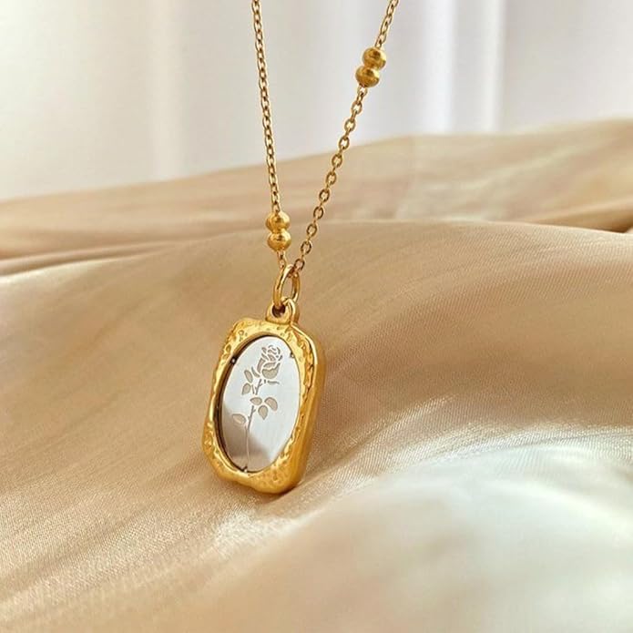 White Glaze Rose Pendant π€ | Anti-Tarnish Golden Beaded Rose Necklace for Women