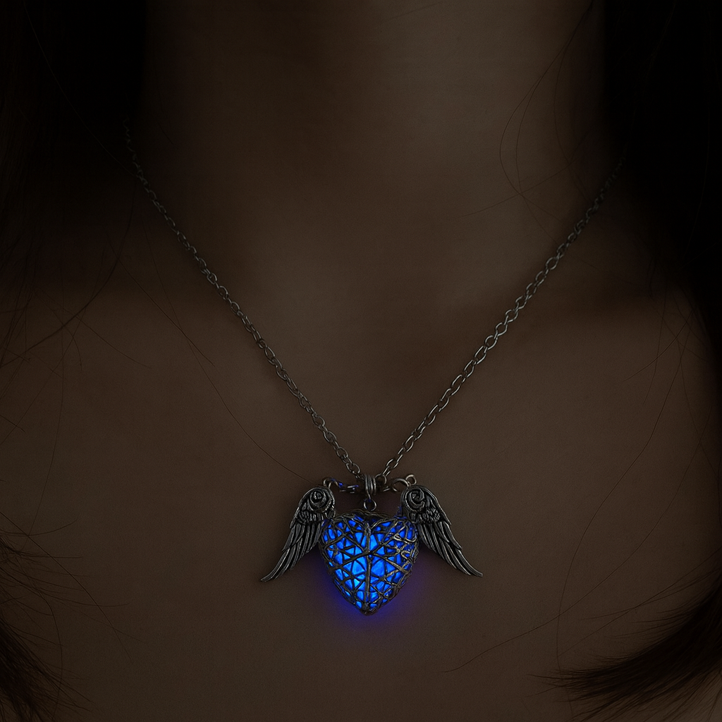 Wings of Light Luminous Glow Necklace π β Angel Wing Blue Heart Pendant Chain